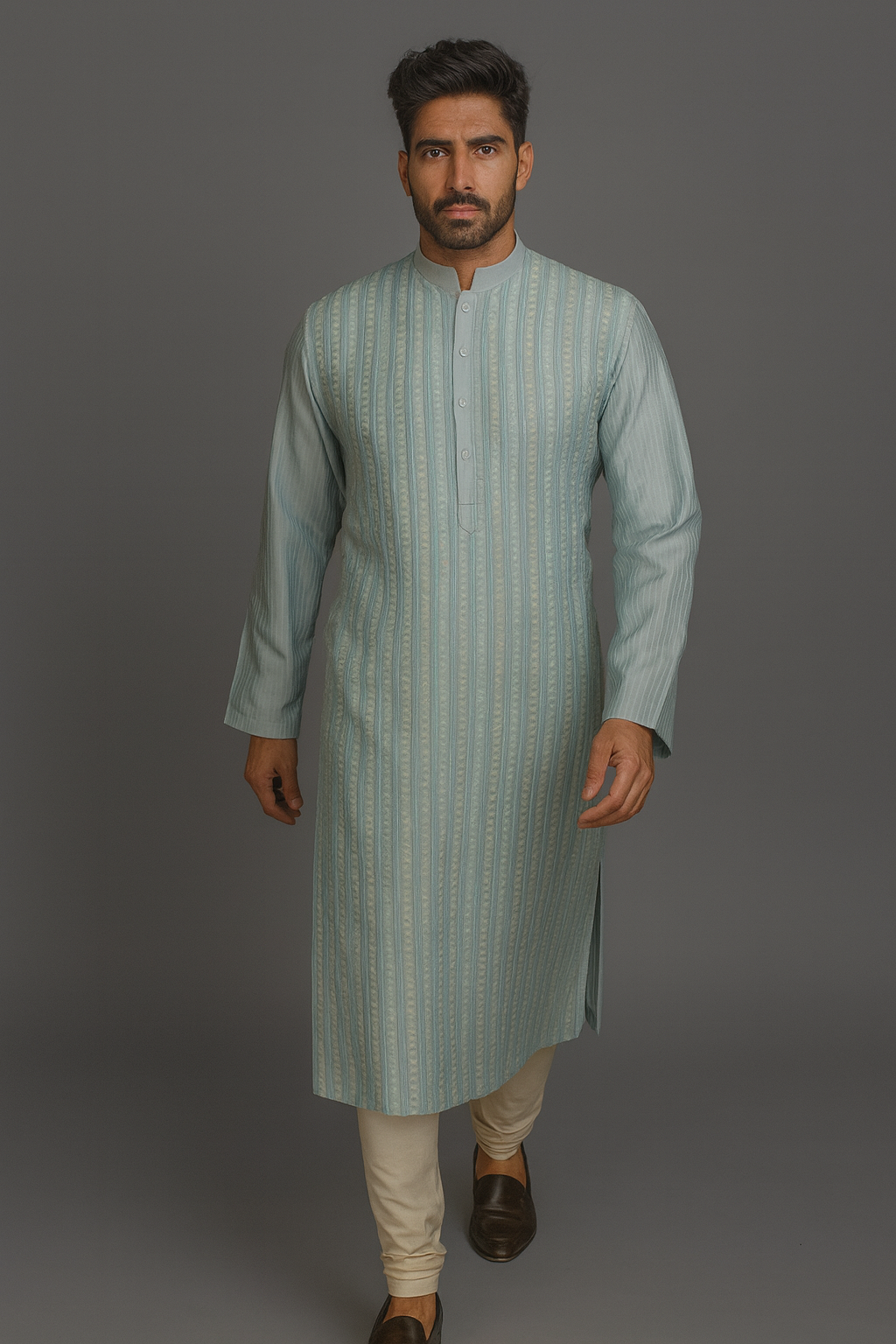 Sky Blue Kurta Set with Machine & Hand Embroidery