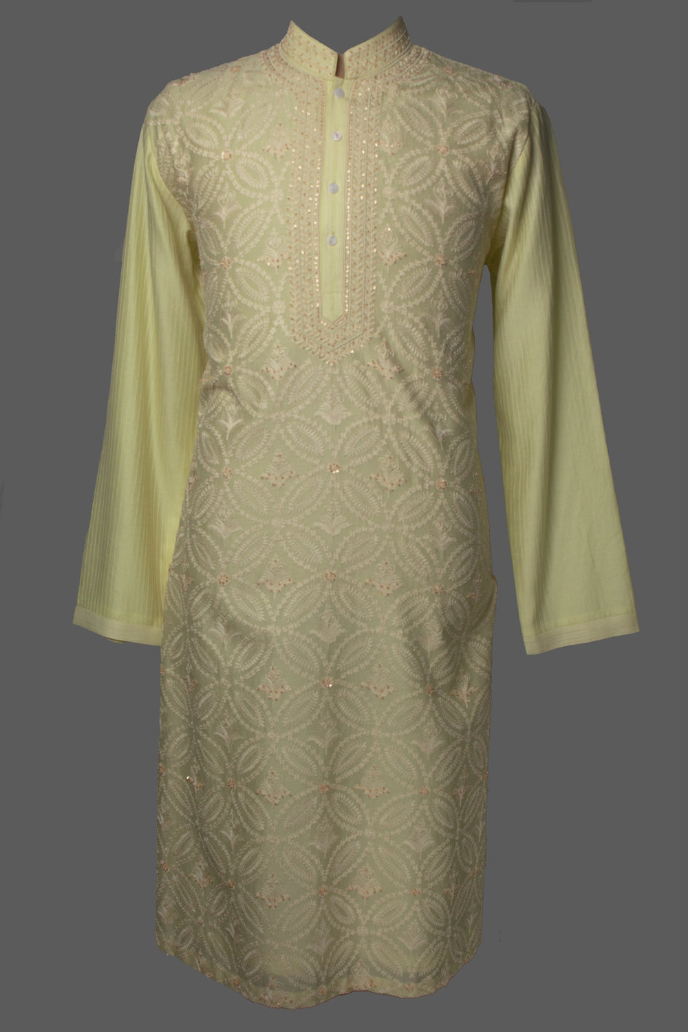 Lemon Yellow Chanderi Kurta Set with Aari & Hand Embroidery