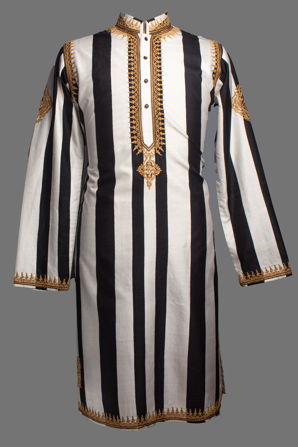 Black & White Printed Silk Kurta Set with Hand & Dori Embroidery