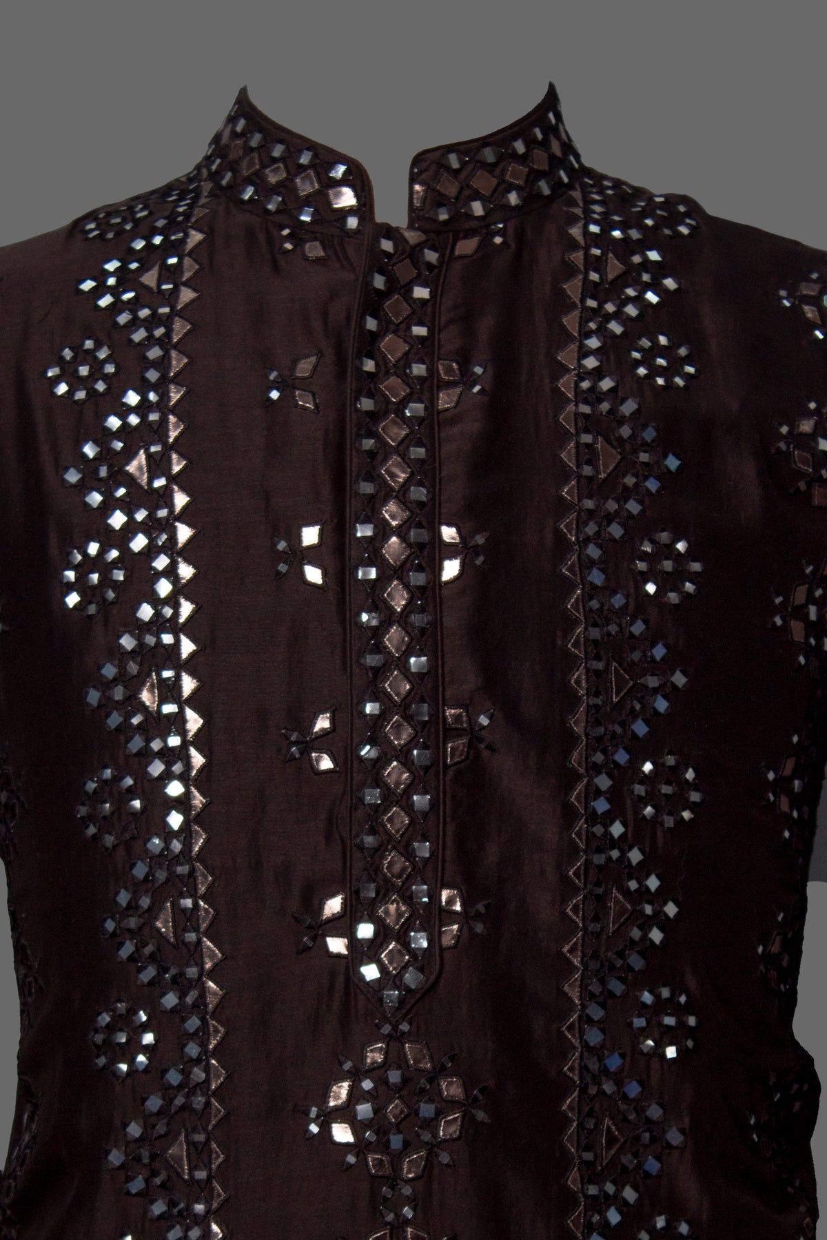 Black Kurta Set with Leather & Mirror Embroidery Detailing