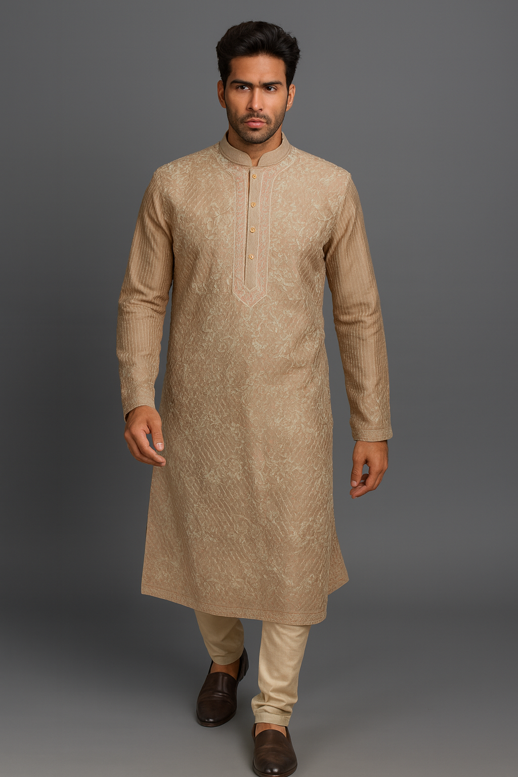 Beige Moonga Silk Kurta