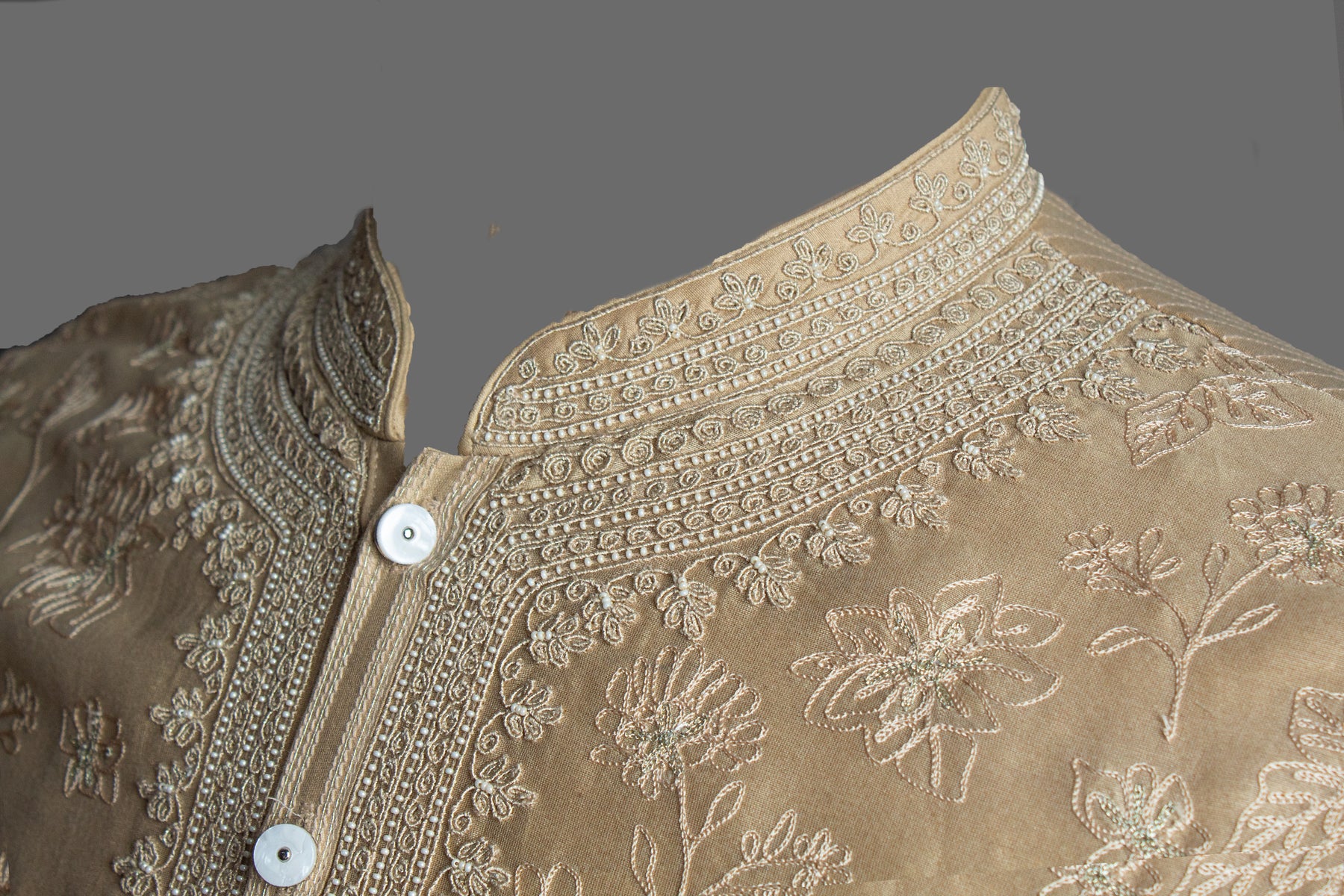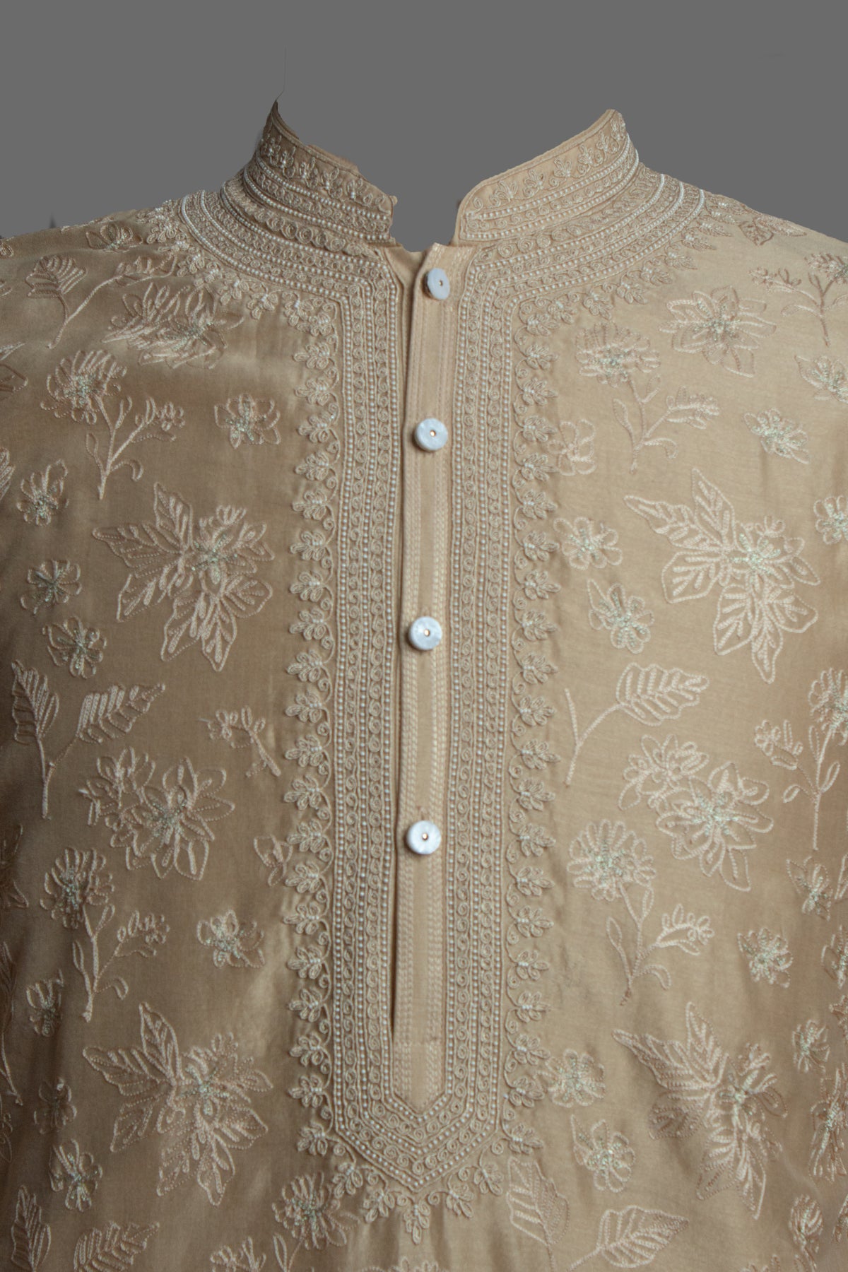 Neckline: Accented with refined Aari and hand embroidery for a regal finish