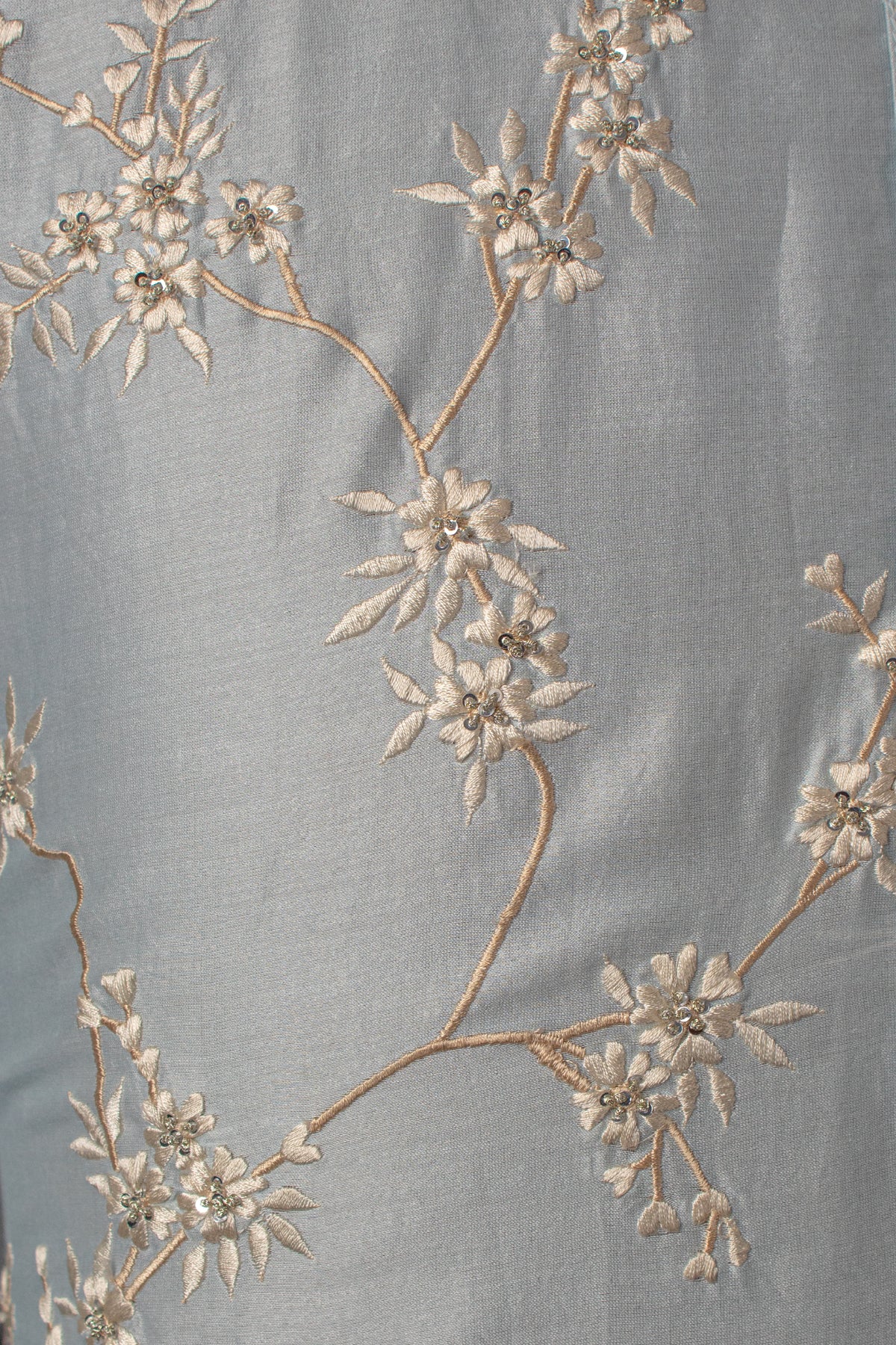 Front & Back: Detailed with a beautiful fusion of machine and hand embroidery, offering rich texture and visual appeal